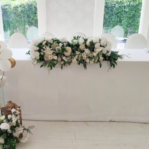 350.00 leiInchiriere arajament prezidiu din flori artificiale albe si bleu